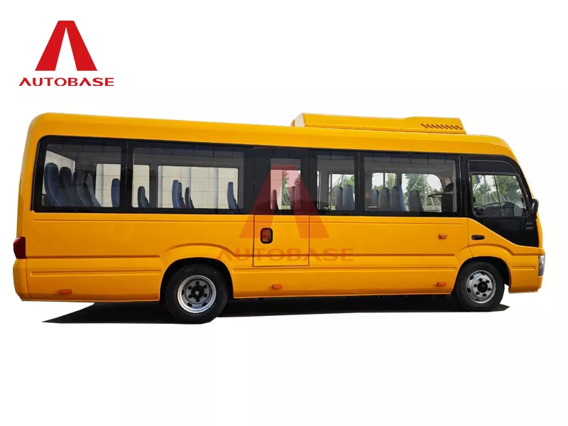 A: బస్సు మొత్తం పొడవు 7,250mm (7.2m) మరియు 2,240mm వెడల్పుతో కాంపాక్ట్ ఇంకా విశాలమైన డిజైన్ను కలిగి ఉంది. ఇది 2+1 సీటింగ్ లేఅవుట్తో పాటు డ్రైవర్తో పాటు మొత్తం 22 మంది ప్రయాణికుల సీటింగ్ కెపాసిటీని కలిగి ఉంది.
